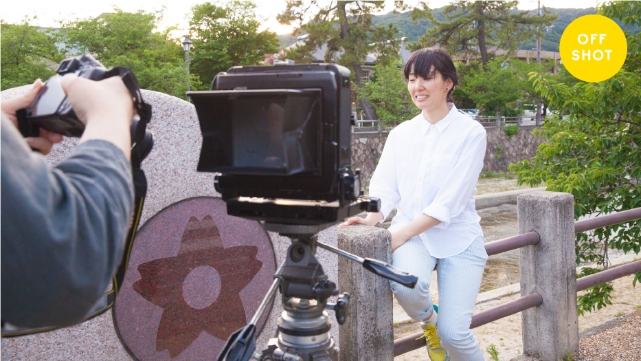 屋外での撮影の一コマ。